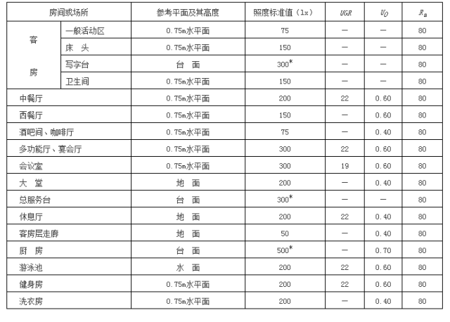 ·表1 我國酒店照明標(biāo)準(zhǔn)值