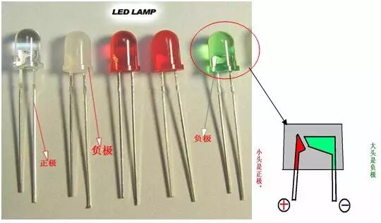 二、發(fā)光二極管長腳為正,短腳為負。如果腳一樣長,發(fā)光二極管里面的大點是負極,小的是正極。有的發(fā)光二極管帶有一個小平面,靠近小平面的一根引線為負極。
