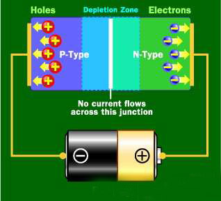 如果嘗試使電流向其它方向流動(dòng),P型端就邊接到電流負(fù)極和N型連接到正極,這時(shí)電流將不會(huì)流動(dòng)。N型物質(zhì)的負(fù)極電子被吸引到正極電子。P型物質(zhì)的正極電子空穴被吸引到負(fù)極電子。因?yàn)殡娮涌昭ê碗娮佣枷蝈e(cuò)誤的方向移動(dòng)所以就沒有電流流通過匯合處,損耗區(qū)增加。