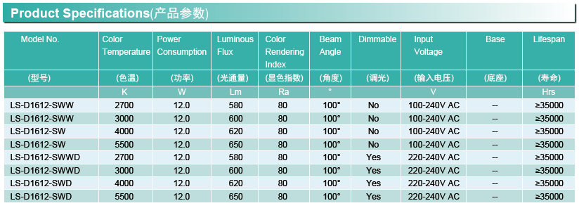 通用型號(hào) —— 筒燈 均壽命(4H/天) —— 25年